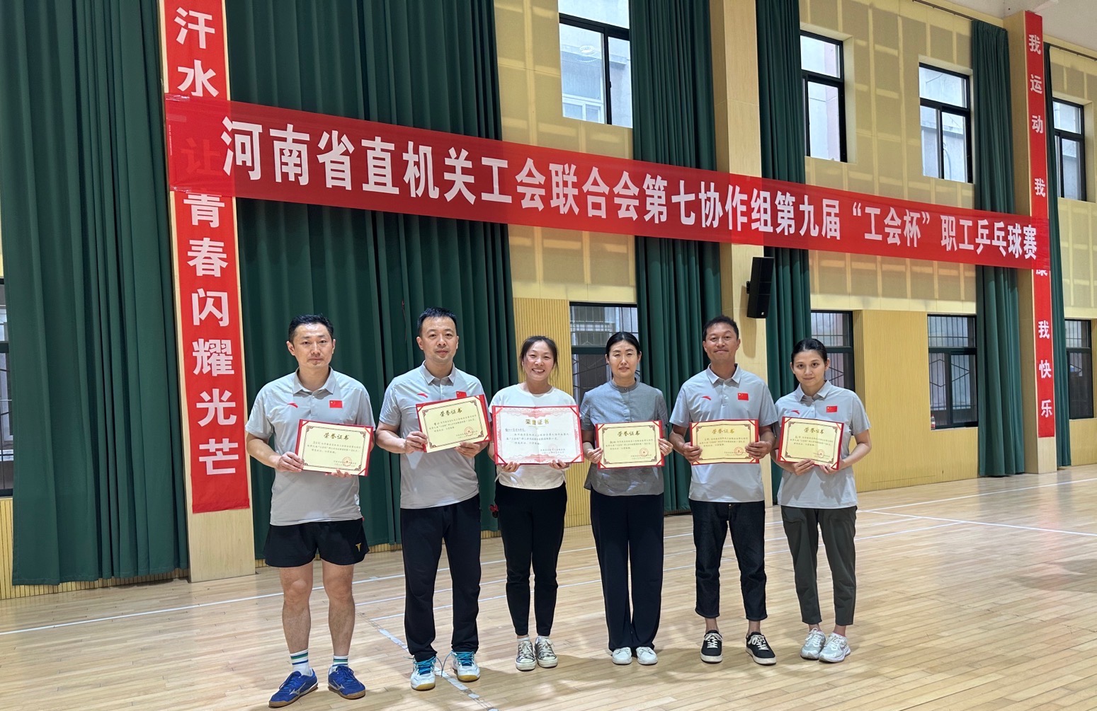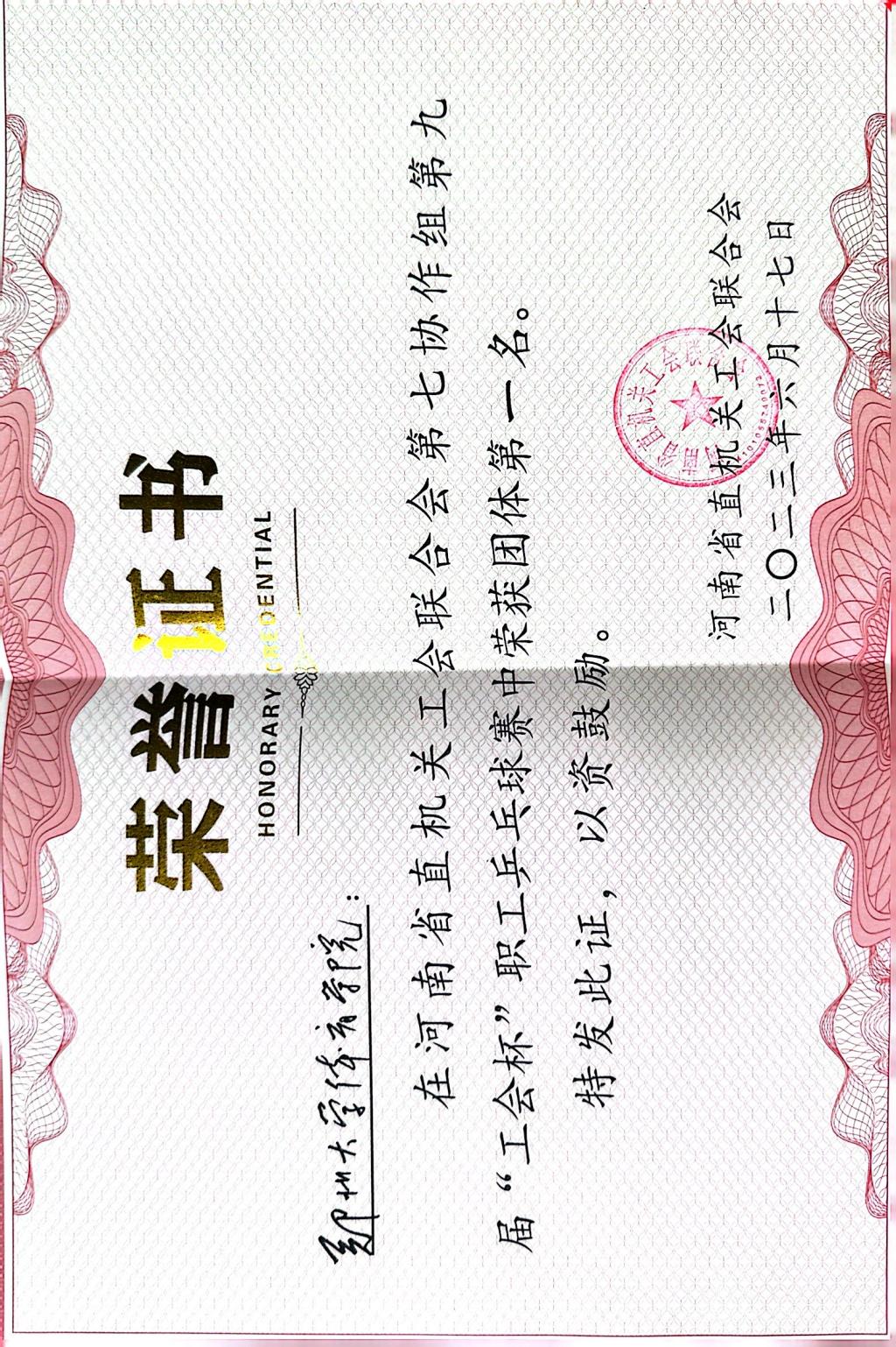 为了深入贯彻落实习近平总书记关于体育强国、人才强国、教育强国的重要思想,进一步活跃省直工会协助组各成员单位广大工会会员的业余文化生活,增强各成员单位之间的交流,院工会组织乒乓球教研室专业老师参加河南省直机关工会第七协作组举办的第九届“工会杯”职工乒乓球赛。