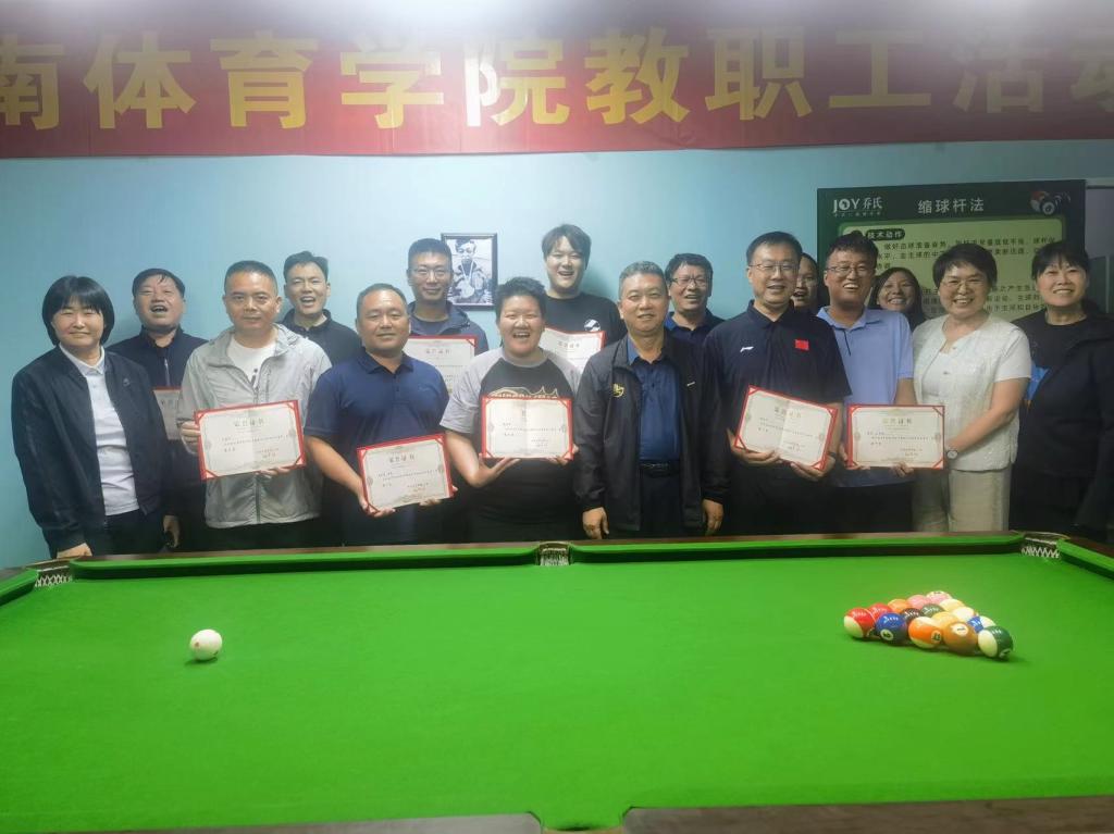 为了丰富我院教职工业余文化生活,增进各部门间的交流与友谊,营造积极向上、健康和谐的文化氛围,由院工会精心组织的2025年教职工台球比赛于2025年9月17日、18日下午在综合服务楼星牌台球训练基地成功举行并圆满落幕。