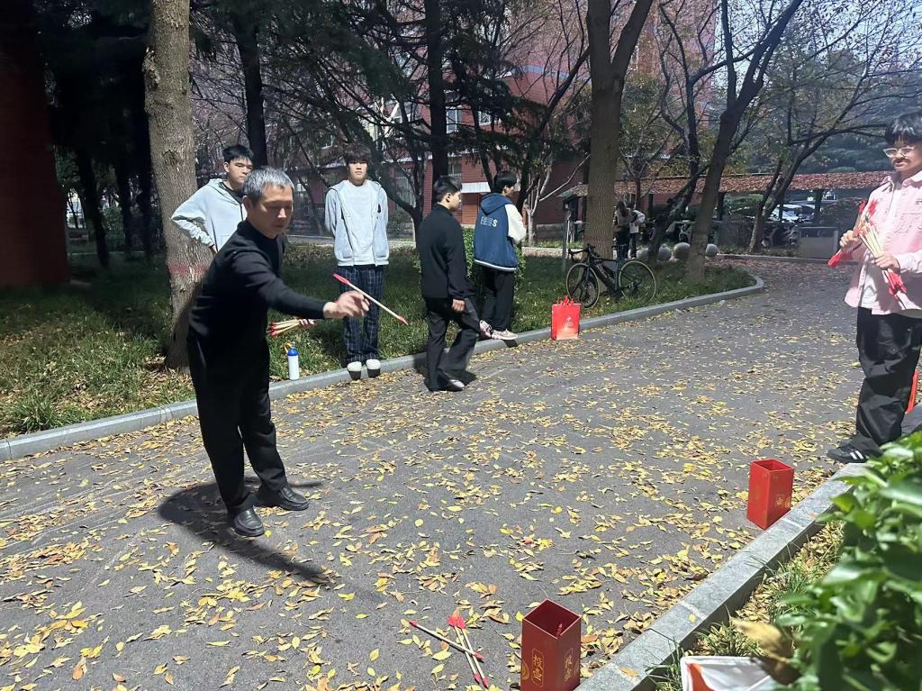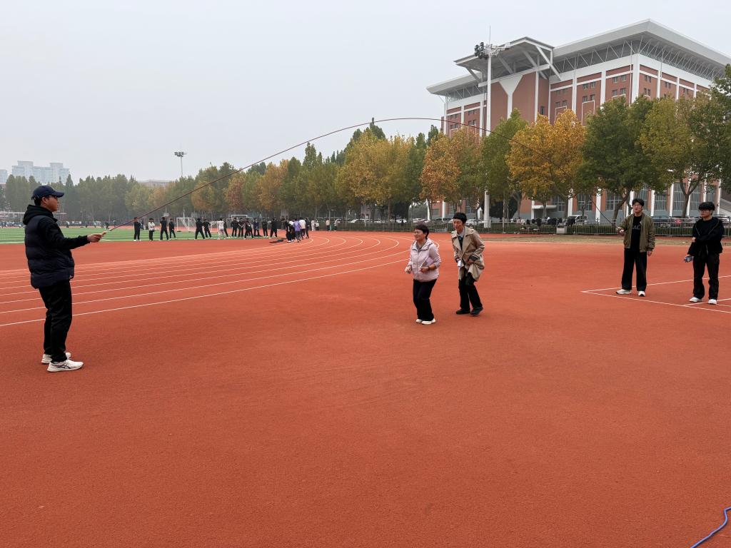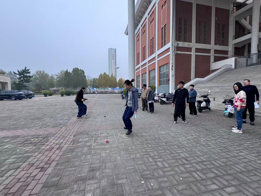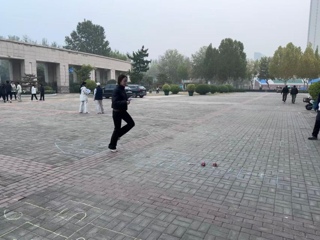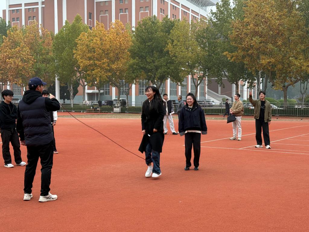 本次定向活动巧妙融合了趣味挑战、团队协作与校园探索。活动路线精心设置了10个打卡点,遍布于盆景园、图书馆、滑板场、攀岩场等校园标志性地点。参赛者们不仅需要依靠地图指引快速定位,更需通力合作,完成包括“双人跳大绳”、“合力跳房子”、“精准投壶”等趣味横生又贴近校园文化的任务。活动现场,欢声笑语此起彼伏,队员们或奔跑穿梭,或默契配合完成挑战,平日里严谨教学的老师们此刻焕发出十足的活力与激情,成为校园里一道最靓丽的风景线。
