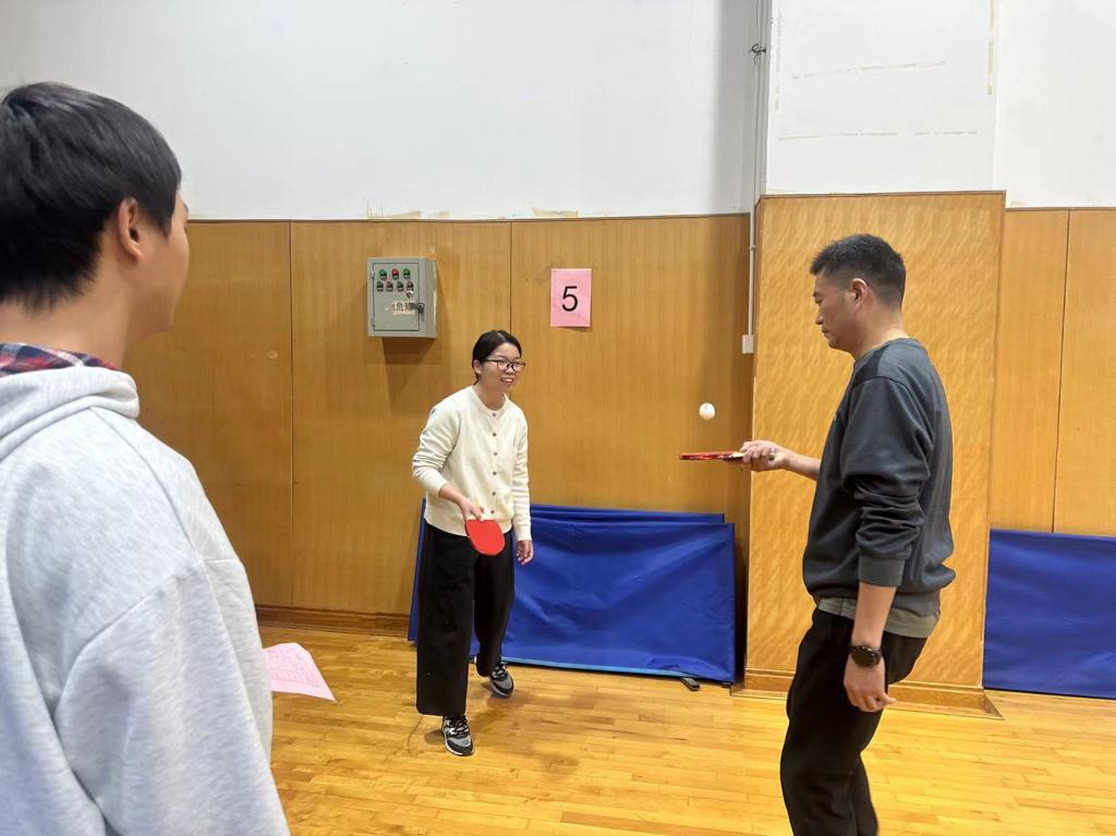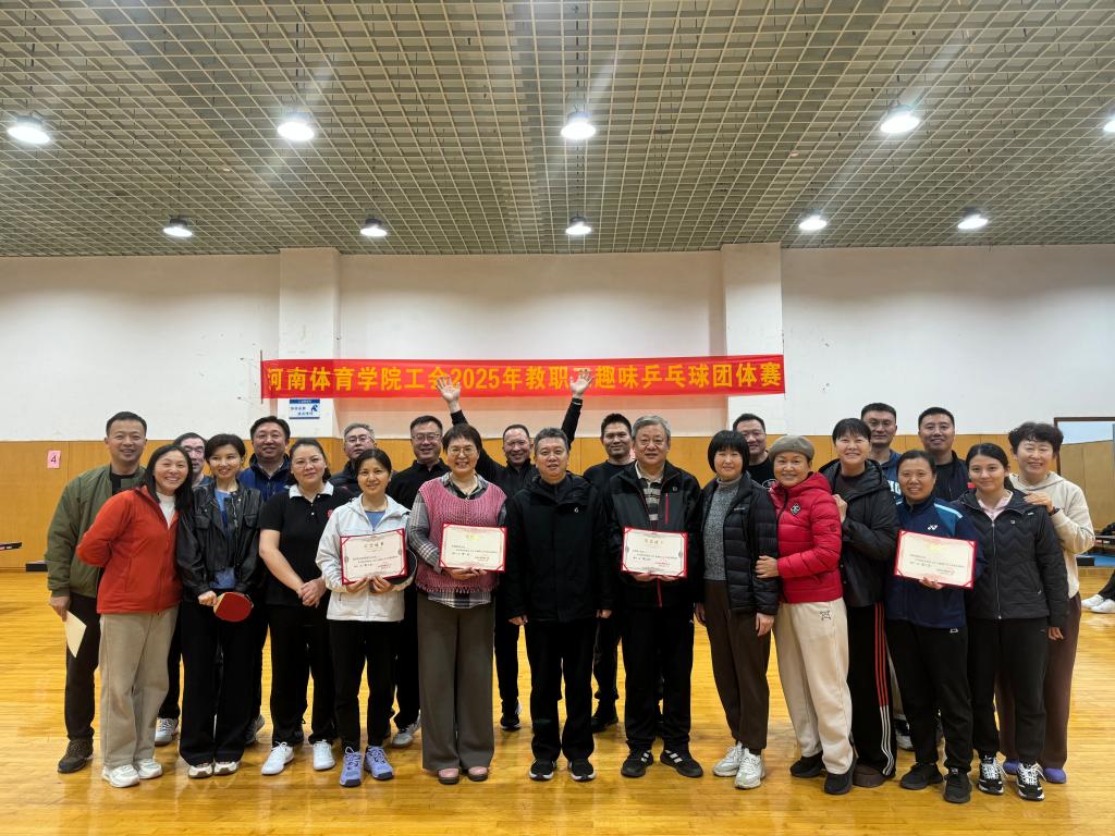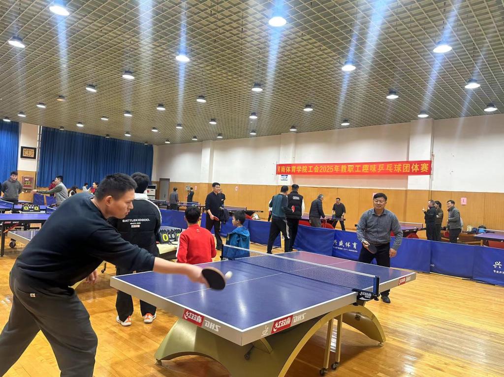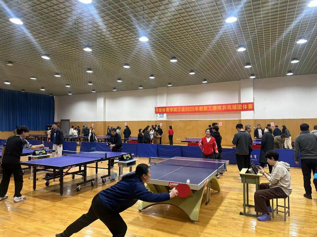 2025年11月11日、12日下午,由院工会举办的河南体育学院2025年教职工乒乓球趣味团体赛在综合训练馆举行。